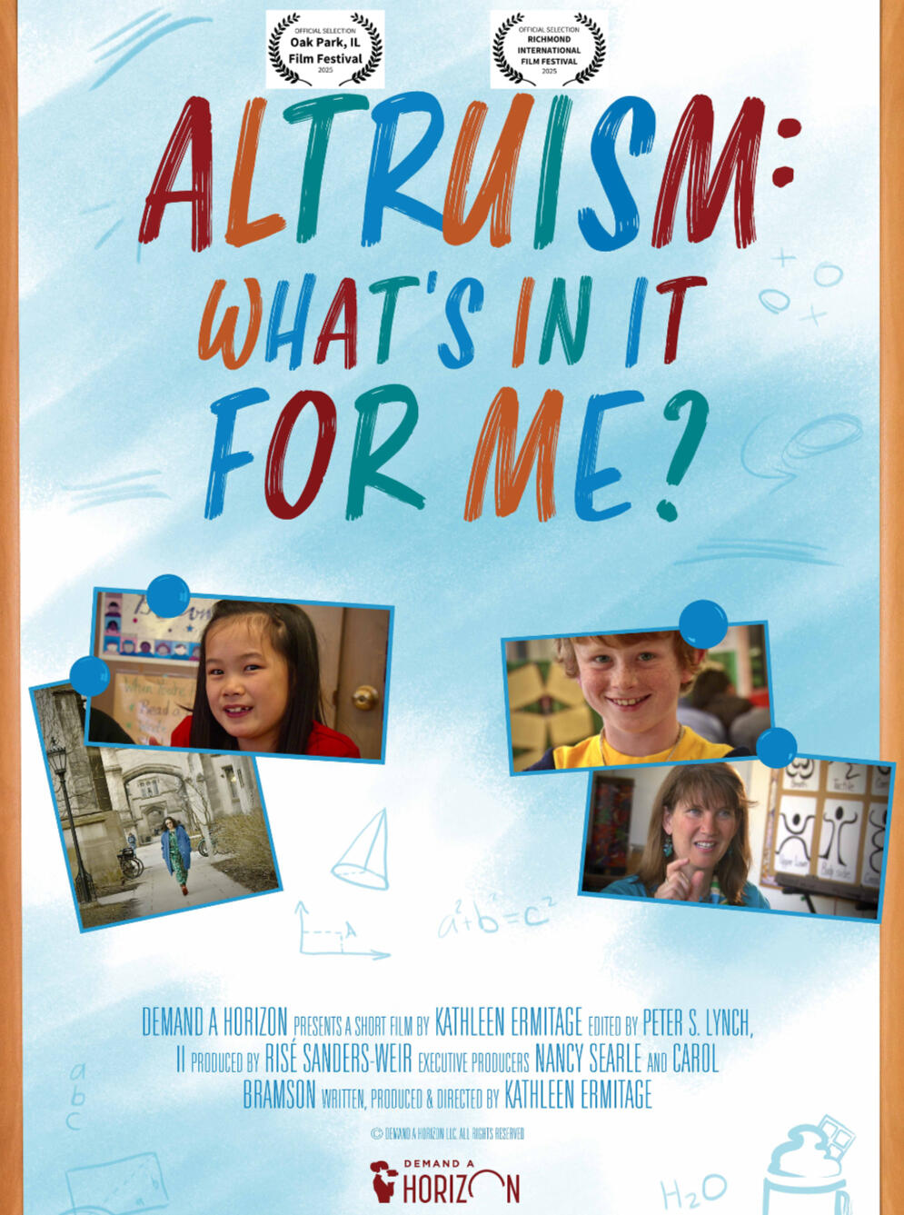 In 2010, a group of fourth-grade students in Oak Park, Illinois, learned how to start a business, then were taught about options for what to do with their profits: spend, save, or give. Their philanthropy benefited people they would never meet in Haiti. Fourteen years later, the filmmakers follow-up with a now-adult student and trace the trajectory this act of altruism had on his life and highlight the remarkable benefits paying it forward.This film is a longitudinal look at altruism—with an intergenerational component.It features renowned Associate Professor of Philosophy Agnes Callard (University of Chicago) and children's book author Katie Smith Milway.
